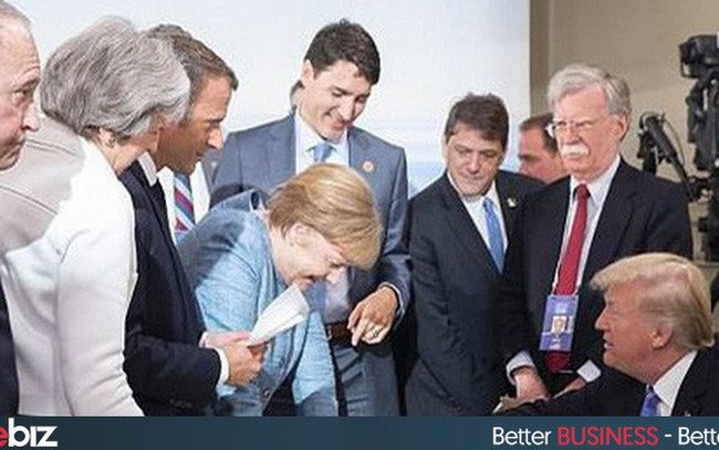 Trước đó, hội nghị thượng đỉnh G7 được tái tạo với một không khí rất khác. Trong một bức ảnh, ông Trump ngồi ở bàn, khoanh tay trước ngực trong khi những lãnh đạo G7 khác – đặc biệt là Thủ tướng Đức, đứng xung quanh hình như tả sự bao tay của cuộc hội thoại.