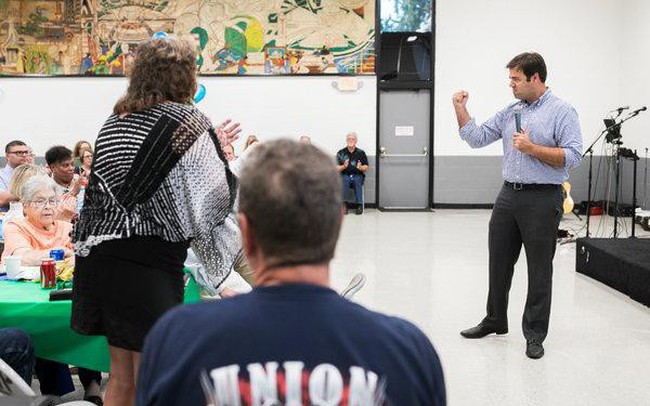 Điều này đúng với những gì diễn ra ở Quận 12 Ohio, được tách ra từ vùng ngoài ô no ấm của Columbus, nơi các công dân kiên cố sẽ được hưởng lợi từ chính sách cắt giảm thuế, đến chân núi Appalachians, vùng công dân không được hưởng lợi. Buổi trò chuyện đầu tiên của Ủy ban Tranh cử Quốc hội Đảng Dân chủ cho cuộc bầu cử đặc biệt mở đầu bằng một cú tiến công Đảng Cộng hòa, Troy Balderson, ủng hộ "giảm mạnh thuế doanh nghiệp sẽ tăng khoản nợ thêm 2 triệu USD".