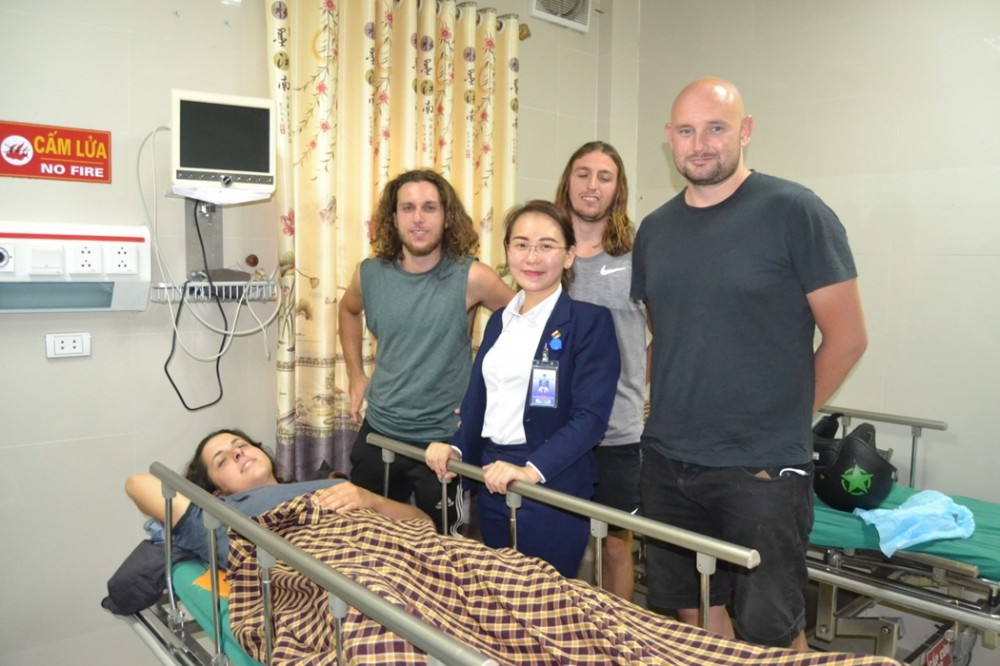 Qua thăm khám ban đầu, các bác sĩ cho biết, bệnh nhân bị tai nạn giao thông mất vận động chân trái, đầu gối chân trái lỏng khớp. Cô được chuyển ngay tới Bệnh viện Đa khoa Hùng Vương.